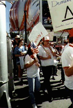 1 For the Reno Gazette-Journal story on the demonstration, go to Union marches on downtown Reno. [EDITOR'S NOTE: As with most RGJ links, this story is now dead.] I personally carried the "Jobs with Justice" sign noted. I was informed it also made KRNV TV-4 (NBC) News. My all-purpose union picket placard is adorned with the book cover from Michael Moore's bestseller "Downsize This!" You can find my memo notifying Mike and his response under "letters" at NevadaLabor.com.