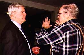 ALWAYS WORKING Not long before his death, Orland Outland, right, confronts Republican Gov. Kenny Guinn at a Washoe Democratic Party meeting. REMEMBERING THE WISE MEN WHO WENT BEFORE. Today at 10:00 a.m., a tree will be dedicated in Reno's Idlewild Park in memory of Orland T. Outland. The late U.S. Army officer spent his entire retirement fighting to improve the lot of the average Nevada citizen.