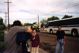 STRIKE AVOIDED (6-20-99) - Teamsters Local 533 CEO Lou Martino, on a live KOLO TV-8 newscast, announces that there will be no Sparks-Reno RTC/Citifare bus strike. Reporter Beryl Chong interviewed Martino immediately after the vote at the union offices on Vassar Street in Reno. A Teamsters Citifare driver, on his normal route, just happened to pass by during the live telecast. He honked.