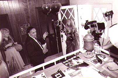 (Left to right) Betty Barbano, Andrew Barbano and belly dancer Rachel Jill with her very well behaved pet python, Sahadda, at a still/video session at Don and Liz Dondero's house. The client was a plumbing/heating/air conditioning trade association. I'll leave it to your imagination to figure out how the belly dancer and snake fit in. Notice the tools of Don's trade on the desk in the foreground. (1990)
