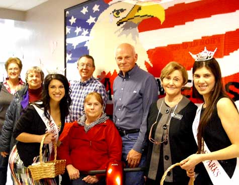 VAlentines (10 Feb. 2012) Nevada Alliance for Retired Americans/Gail Bishop Chapter VA Valentine Volunteers begin their rounds at the Reno VA Medical Center. Left to right are VAVol Carol Mark, former Nevada State Board of Education member Peggy Lear Bowen, Miss UNR Ashton Sunsiri, VAVol Dean Schermerhorn, NARA event coordinator Gail Dietrich (seated), VAVol Nelson Dietrich, Miss Reno/Sparks & Miss UNR Pageant Director Shirley Lunsford and Miss Reno/Sparks Madeline Burak.