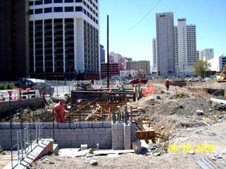 WORK IN PROGRESS Union workers in the foundation of the Reno Aces ballpark construction, August 28, 2008. (Photo from Building & Construction Trades Council of Northern Nevada/AFL-CIO.)