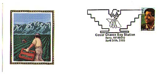 Chávez first class postage stamp. Envelope art by Brian Bird,