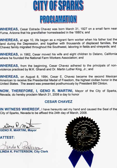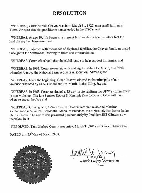 WHEREAS, on August 8, 1994, César E. Chávez became